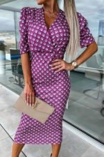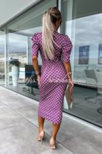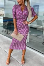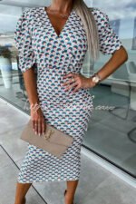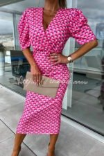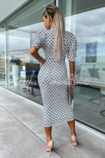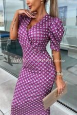 Late Night Gala Satin Printed Puff Sleeve Midi Dress