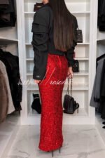 Let’s Celebrate Sequin High Rise Fishtail Maxi Skirt