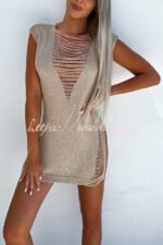 Liberty Island Hollow Out Knit Beach Mini Dress