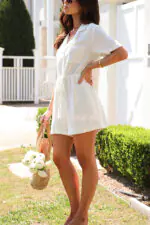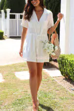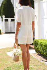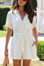 Linen Blend Lapel Pocket Waist Tie Loose Rompers