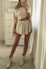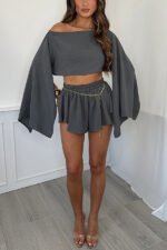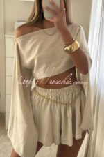 Mae Linen Blend Cropped Wide Sleeved Top and Elastic Waisted Shorts Set