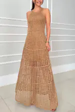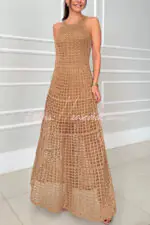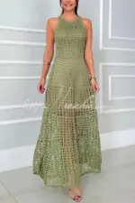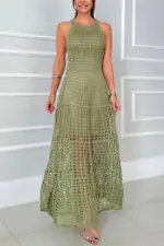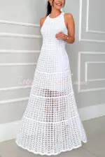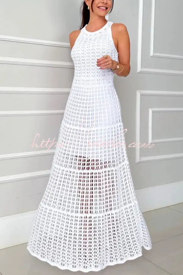Mariane Crochet Knit Round Neck Texture A-line Maxi Dress