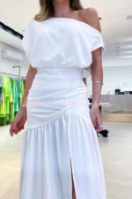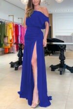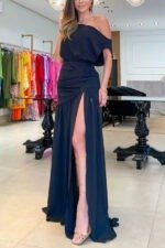 Midnight Chances One Shoulder Ruched Detail Slit Maxi Dress