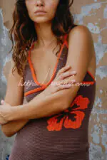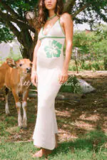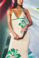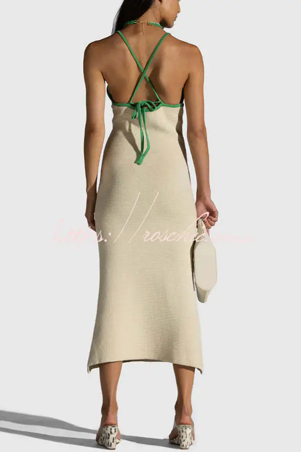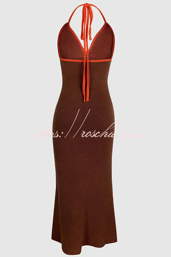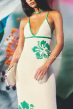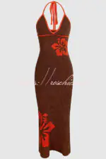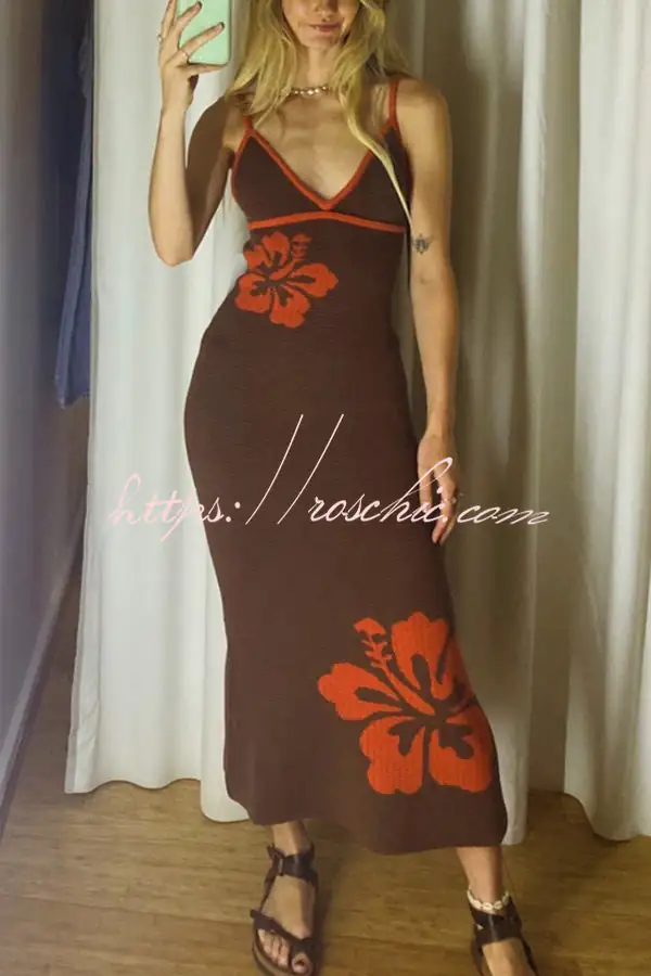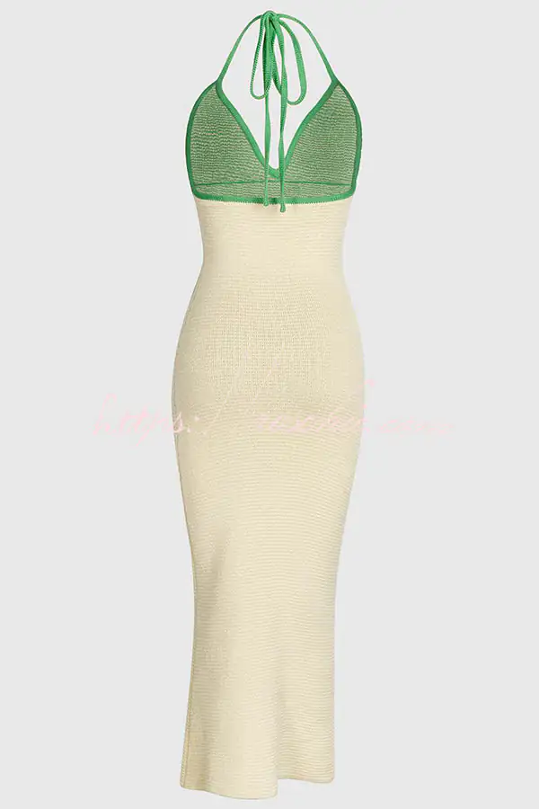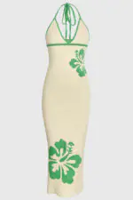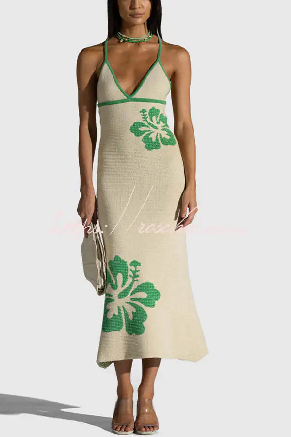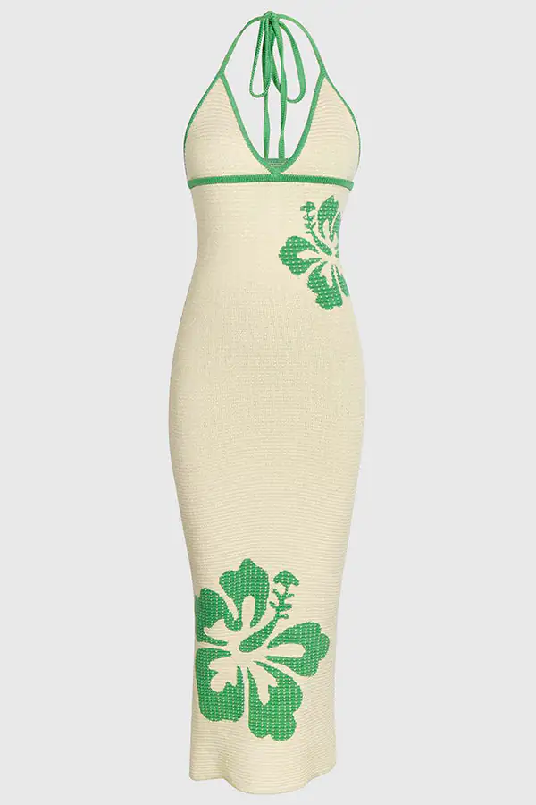 Midsummer Knit Floral Pattern Mermaid Hem Halterneck Stretch Midi Dress