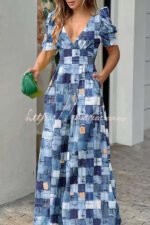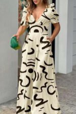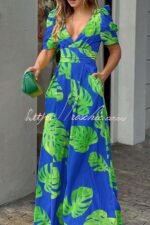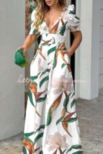 Milly Printed Puff Sleeve Pocketed Wide Leg Jumpsuit