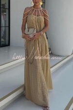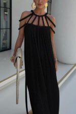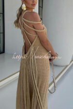 Modern and Sophisticated Linen Blend Draped Braids Cover Up Maxi Dress