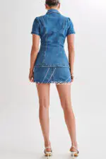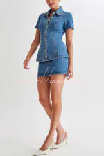 Modern Flavor Denim High Rise Back Zipper A-line Stretch Mini Skirt