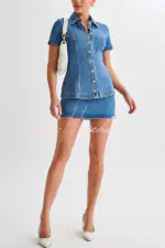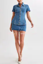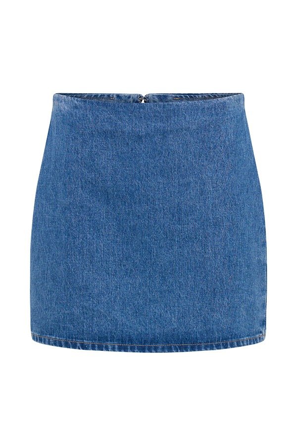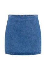 • Discover the denim mini skirt. a versatile and fashionable addition to your wardrobe. This skirt features a side zip for easy entry and a flattering A-line silhouette. Mid-rise. mini length. fashionable and youthful. suitable for various occasions. Elevate your overall look with a denim mini skirt. perfect for adding a touch of casual chic to your outfits. Wear with a denim short-sleeve top for a matching look.