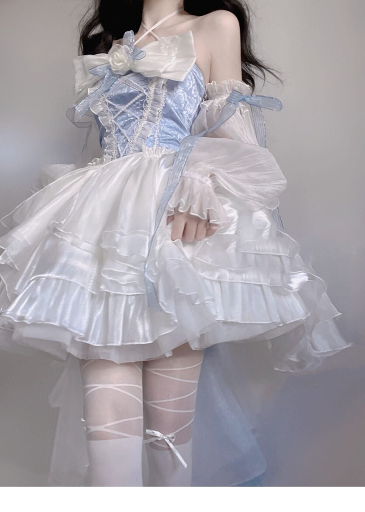 Modest Ball Gown Strapless Blue Organza Floral Holiday Lolita Dress Birthday Dresses Birthday Outfits SD1240
