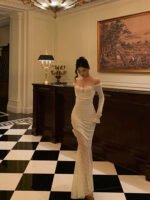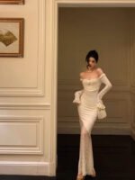 Modest Sheath Off The Shoulder Long Sleeves Lace Prom Dresses Evening Dress SD426