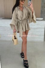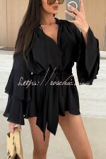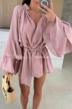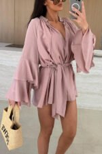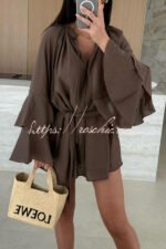 Molly Linen Blend Tiered Bell Sleeve Tie-up Cover-up Mini Dress