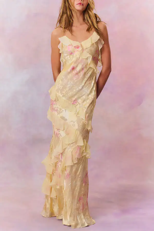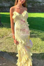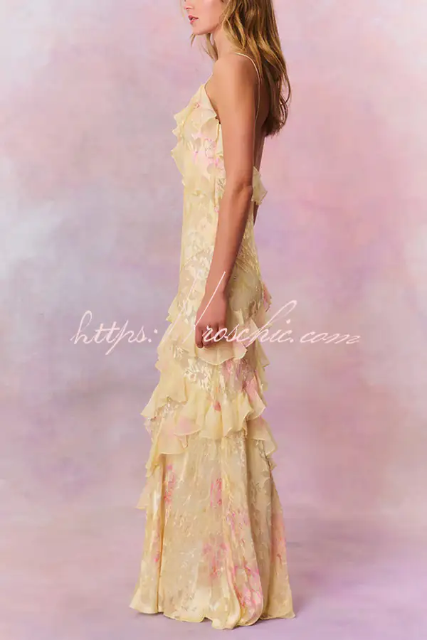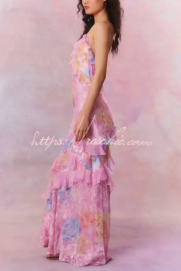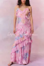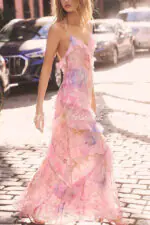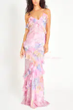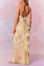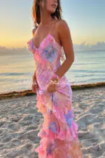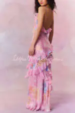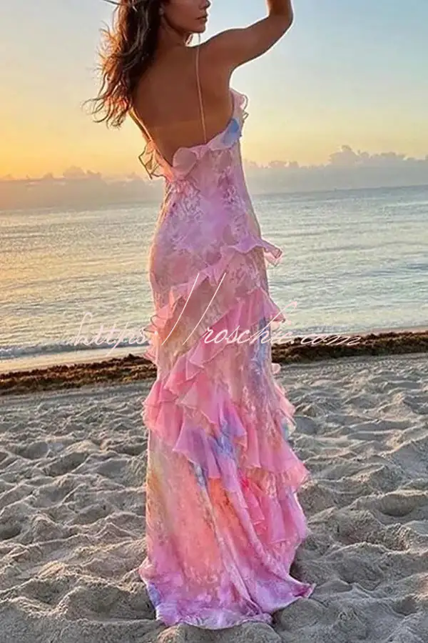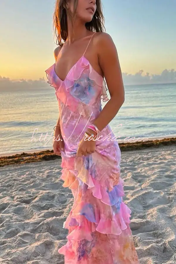 Multicolor Tie-dye Sexy Backless Wave-hem Strap Maxi Dress