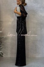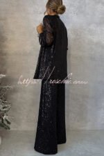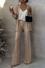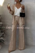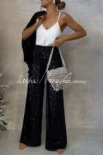 Party Scene Sequin High Rise Elastic Waist Wide Leg Pants