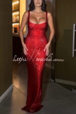 Passionate Woman Glitter Fabric Square Neck Back Lace-up Maxi Dress