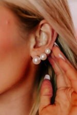 Pair these earrings with your OOTD for a perfect feminine finishing touch! – A set of three different pairs of different sized faux pearl studS