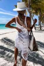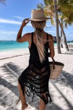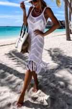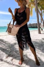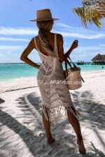 Queen of The Beach Tassel Cutout Knit Cover-up Dress