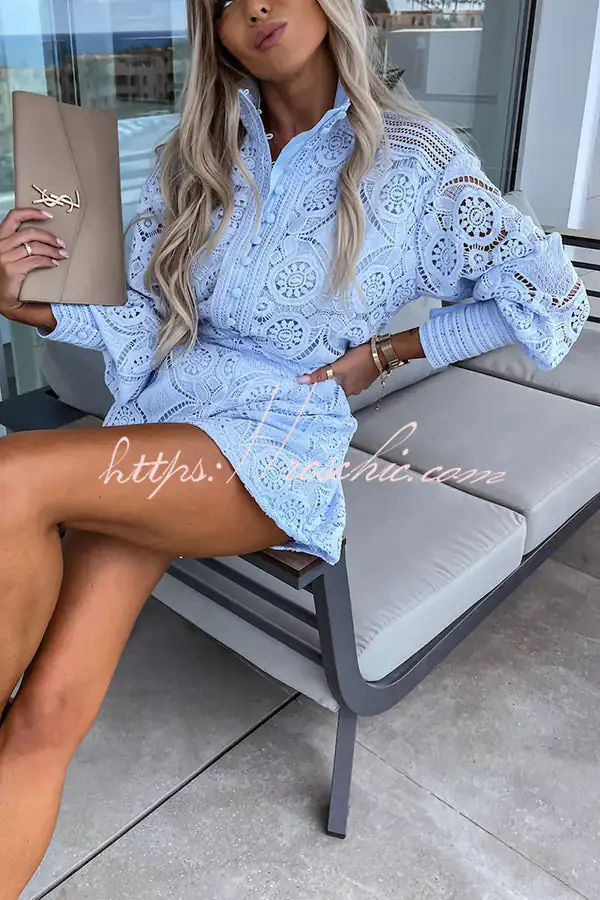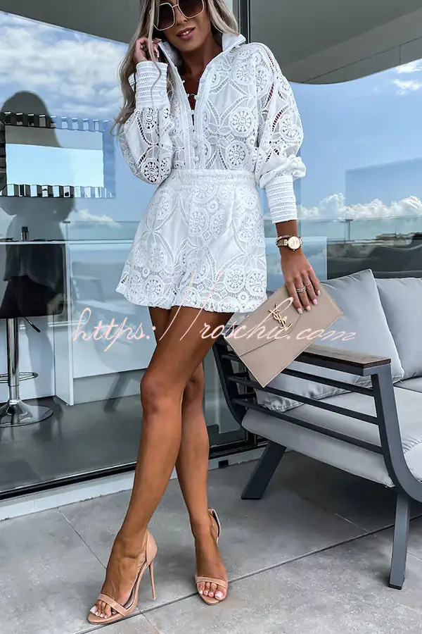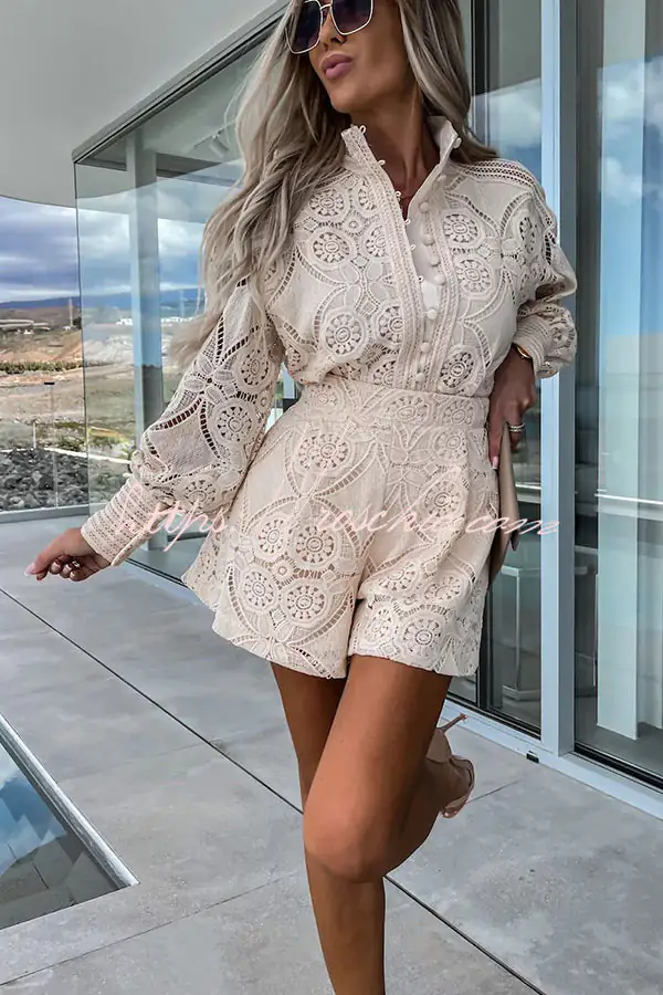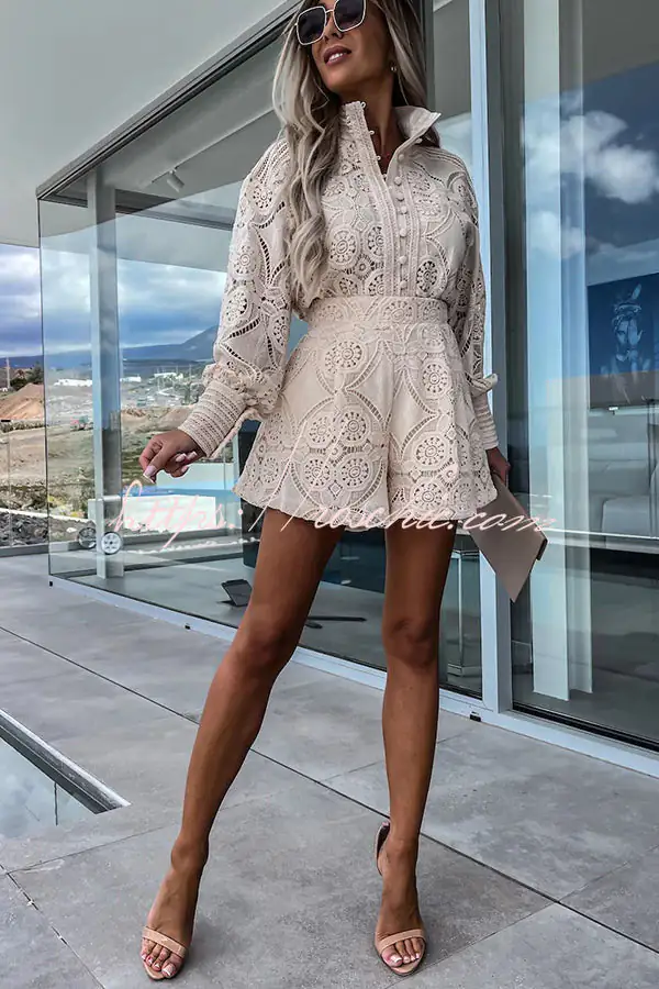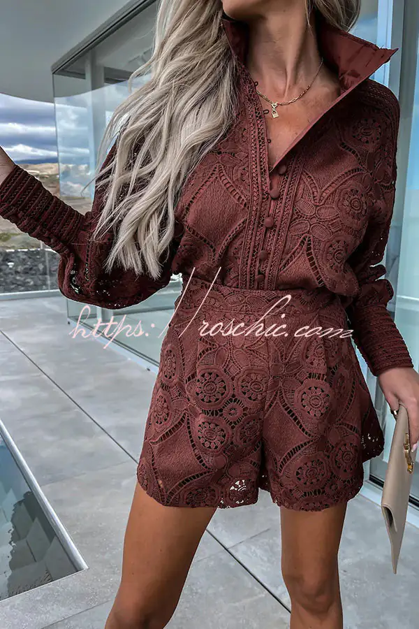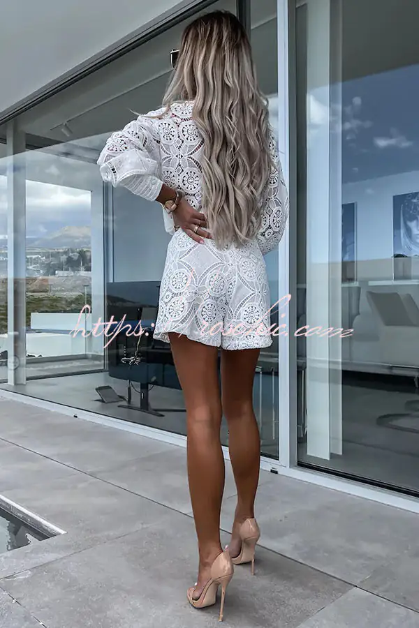 Radiant Blessings Eyelet Crochet Lace Blouse and Shorts Set