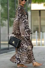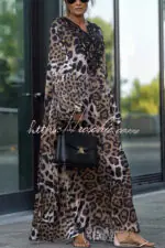 Rayna Lace Mixed Leopard Print Balloon Sleeve A-line Maxi Dress