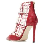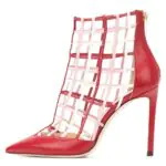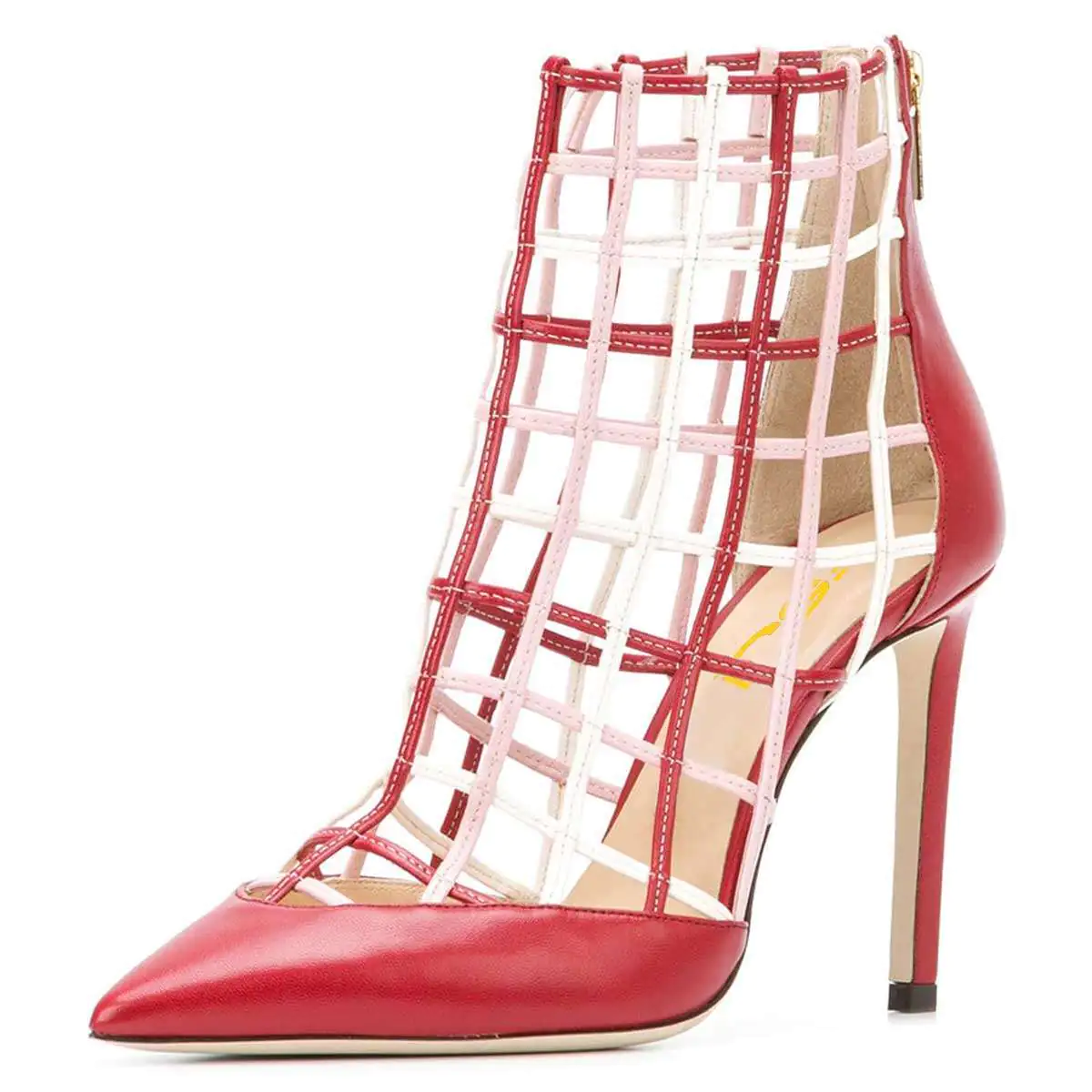 Red Pointed Toe Three Tone Caged Strap Heeled Summer Ankle Boots