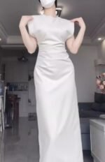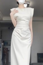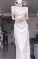 Retro Mermaid Satin White Prom Dresses Birthday Outfits With Ruffle SD1143
