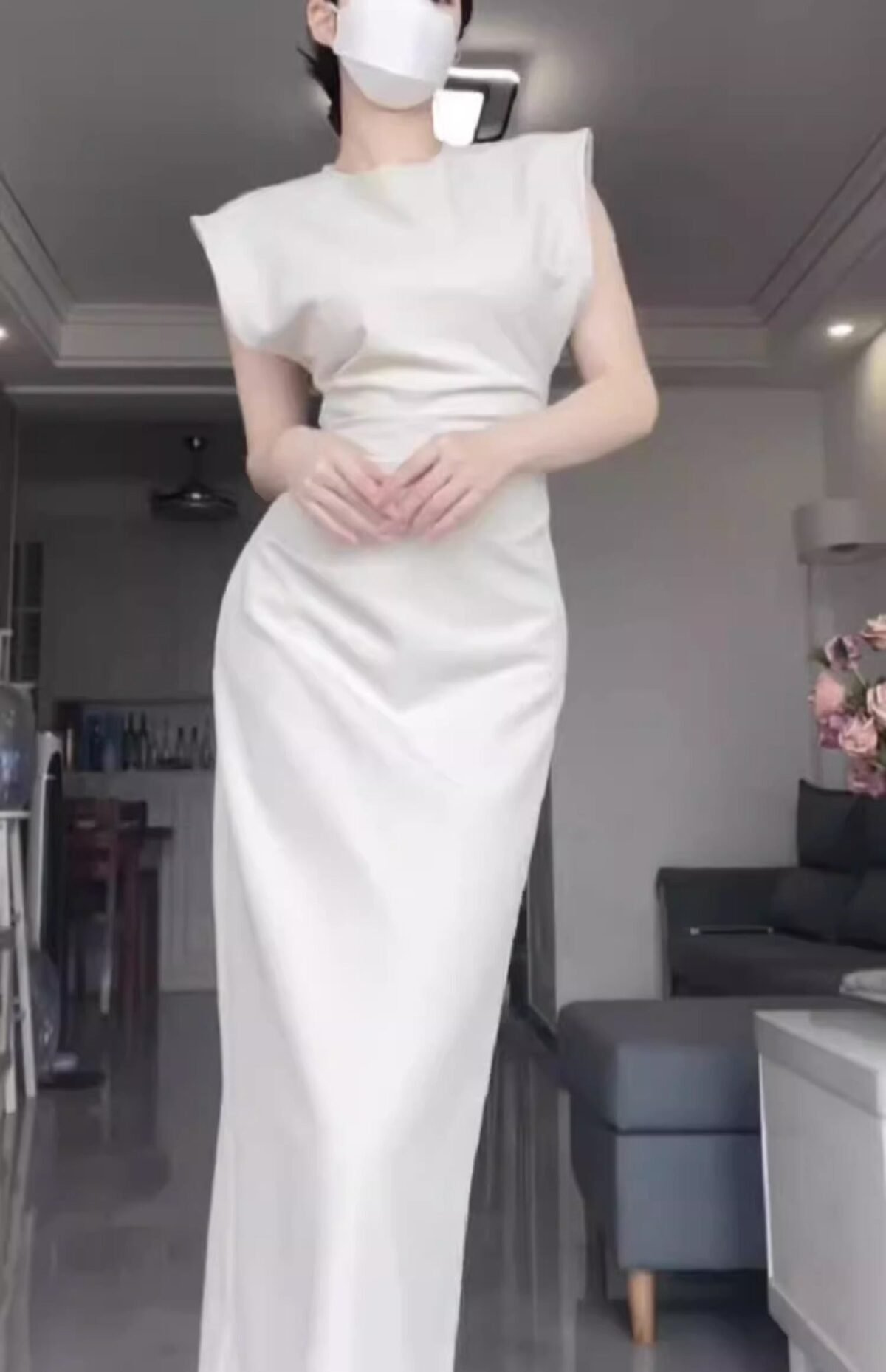 Retro Mermaid Satin White Prom Dresses Birthday Outfits With Ruffle SD1143