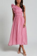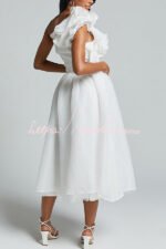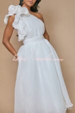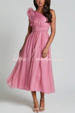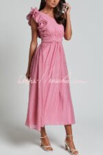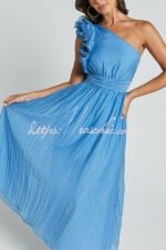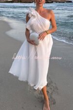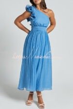 Romantic Seaside One Shoulder Frill Detail Sleeve Layered Midi Dress