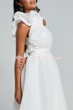- Layered ruffled one-shoulder sleeves