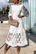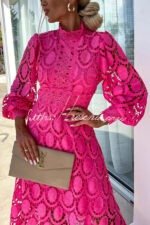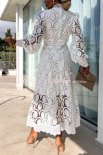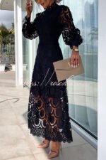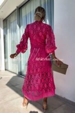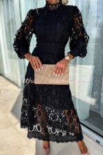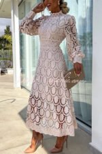 Romantic. Sensual and Elegant Crochet Lace Lantern Sleeve Party Midi Dress