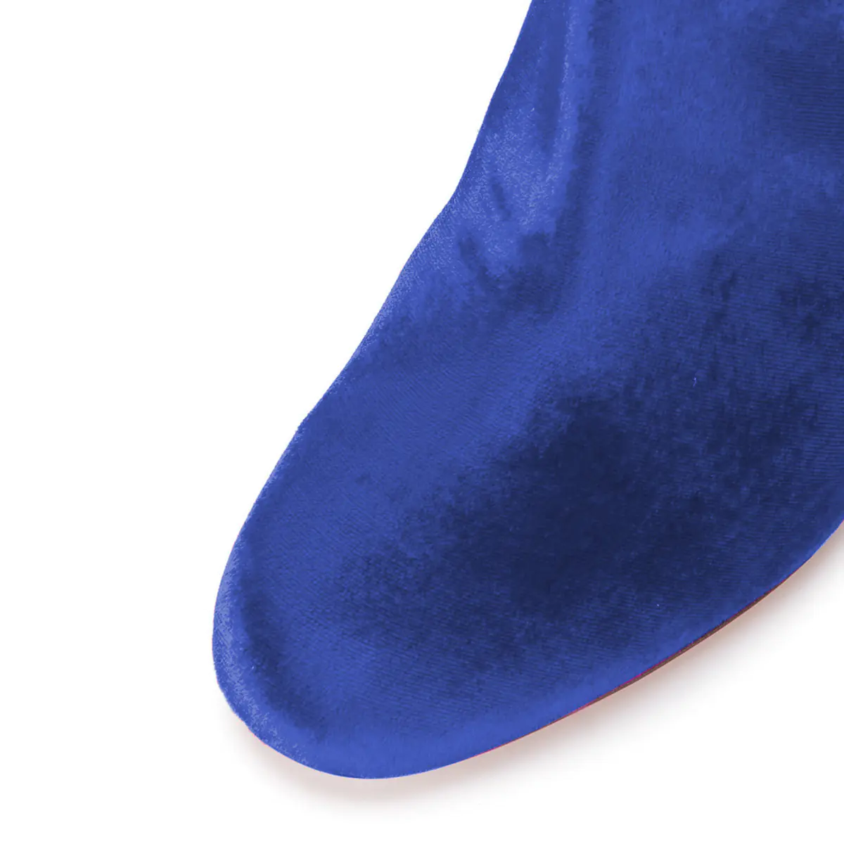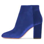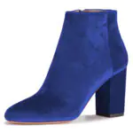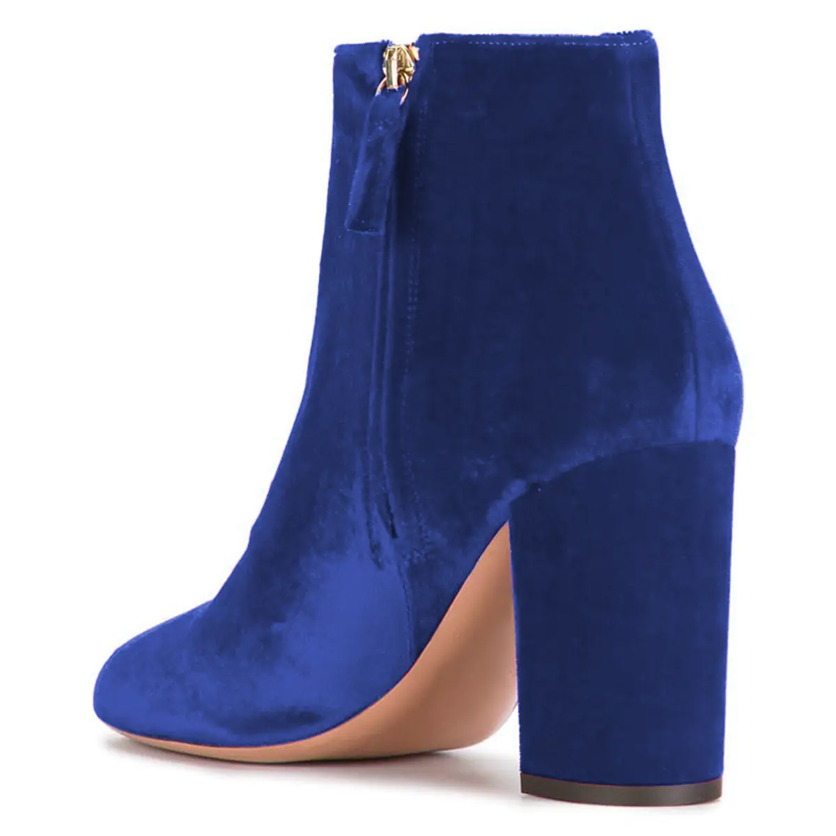 Royal Blue Velvet Round Toe Chunky Heel Office Ankle Boots