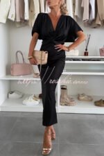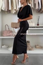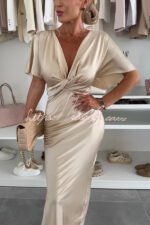 Satin Solid Color V-neck Cross Knot Slim Maxi Dress