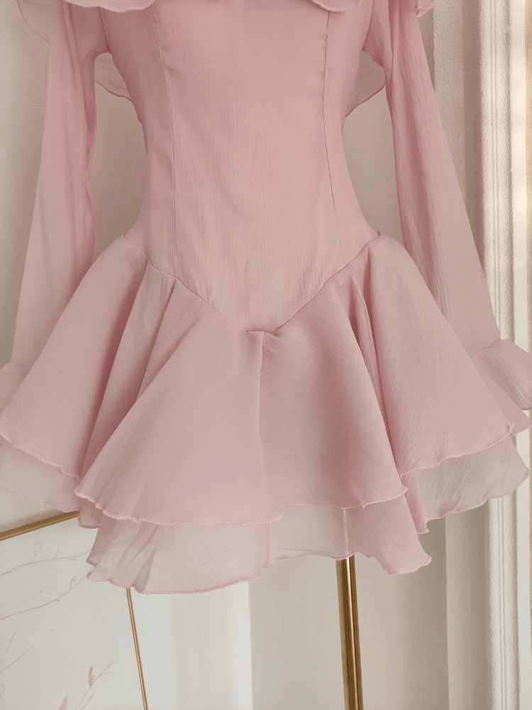 Sexy A Line Halter Ruffles Pink Vacation Dresses Short Chiffon Birthday Outfits SD342