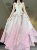 Sexy A line Ombre Pink Chiffon Dress Long Prom Dresses Night Dress Birthday Outfits SD1176