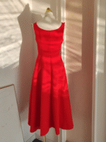 Sexy A line Scoop Neckline Red Travel Vacation Dresses Satin Birthday Dress SD327