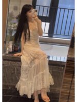 Sexy A line Spaghetti Straps Lace White Chiffon Beach Dress Women’s Vacation Dresses SD1142