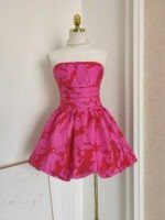 Sexy A line Strapless Satin Pink Floral Vacation Dresses Short Birthday Dress SD1260
