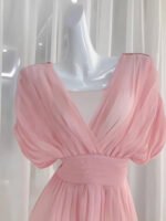 Sexy A line V Neckline Ruffled Pink Chiffon Beach Dress Women’s Vacation Dresses SD1141