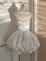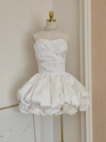 Sexy Ball Gown Sweetheart White Satin Vacation Dresses Short Birthday Outfits SD329