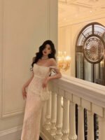 Sexy French Mermaid Square Neckline Lace White Prom Dresses Birthday Outfits Evening Gown SD1051