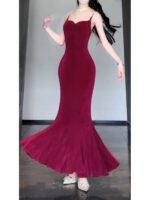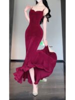 Sexy Mermaid Spaghetti Straps Christmas Dress Burgundy Prom Dresses Birthday Outfits SD1169
