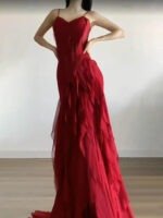 Sexy Mermaid Spaghetti Straps Red Chiffon Ruffles Birthday Dresses Long Prom Dress SD1160