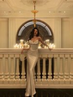 Sexy Mermaid Spaghetti Straps White Silk Satin Long Prom Dresses Birthday Outfits SD305