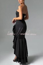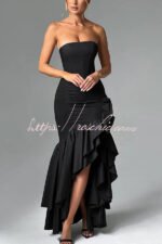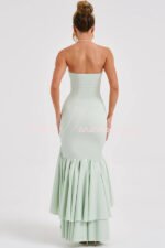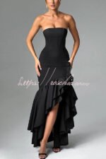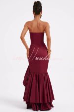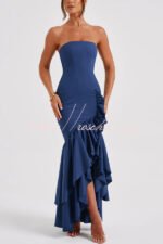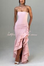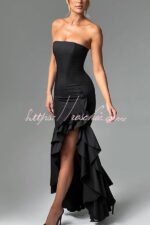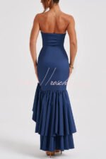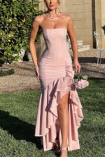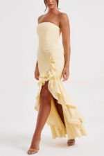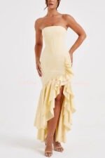 Samira Satin Back Lace-up Ruffles High Low Slit Maxi Dress