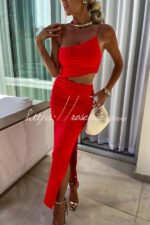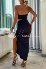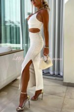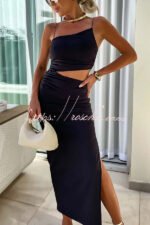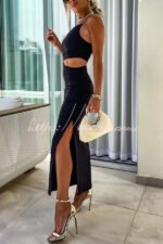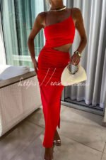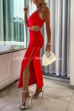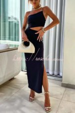 Sexy Partner Asymmetrical Cutouts Slit Stretch Maxi Dress