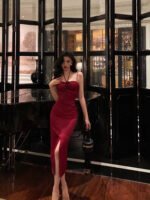 Sexy Sheath Halter Red Ankle Length Slit Prom Dresses Birthday Dress SD425