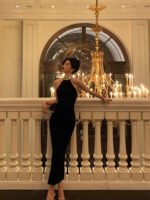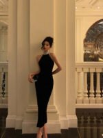 Sexy Sheath High Neckline Black Beads Ankle Length Prom Dresses Birthday Dress SD414