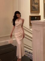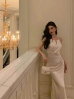 Sexy Sheath Scoop Neckline White Ankle Length Prom Dresses Birthday Dress SD423