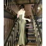 Sexy Sheath Spaghetti Straps Floor Length Green Satin Prom Dresses Birthday Dress SD431