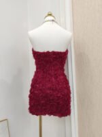 Sexy Sheath Strapless Burgundy Tulle Travel Vacation Dresses Short Birthday Dress SD1248