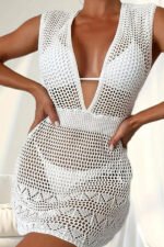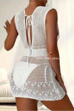 Sexy Sleeveless V-Neck Tie-Back Knit Cover-Up Mini Dress