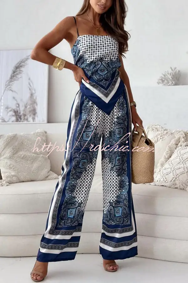 Floral Print V-neck Loose Top and Elastic Waist Wide-leg Pants Set